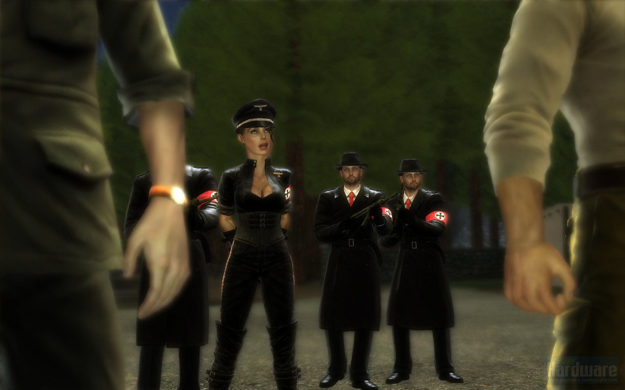 But then as I stepped out into the streets of Paris on a cold, rainy night I was passed in the streets by a female Nazi officer, and what the game was missing hit me square in the face: tits! There they were, bursting forth from her uniform in a manner I assume was not up to code in those days. This certainly wasn’t the first perfectly sculpted and largely bosomed woman of the game, but before Lieutenant Bübenstein here every other woman of her physicality had been inside a strip club (a contrived but passable setting). As I stared into the endless canyon between her animated magumbas I saw a very clear message: you’re sitting in your underwear on a couch in the 21st century.